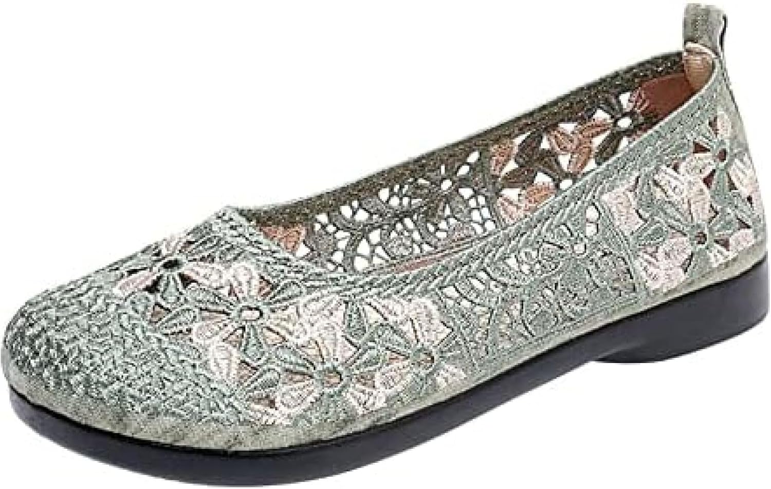 モカシン レディース 花刺繍入り ドライビングシューズ キャンバスシューズ メッシュ 透かし彫り 透・・・