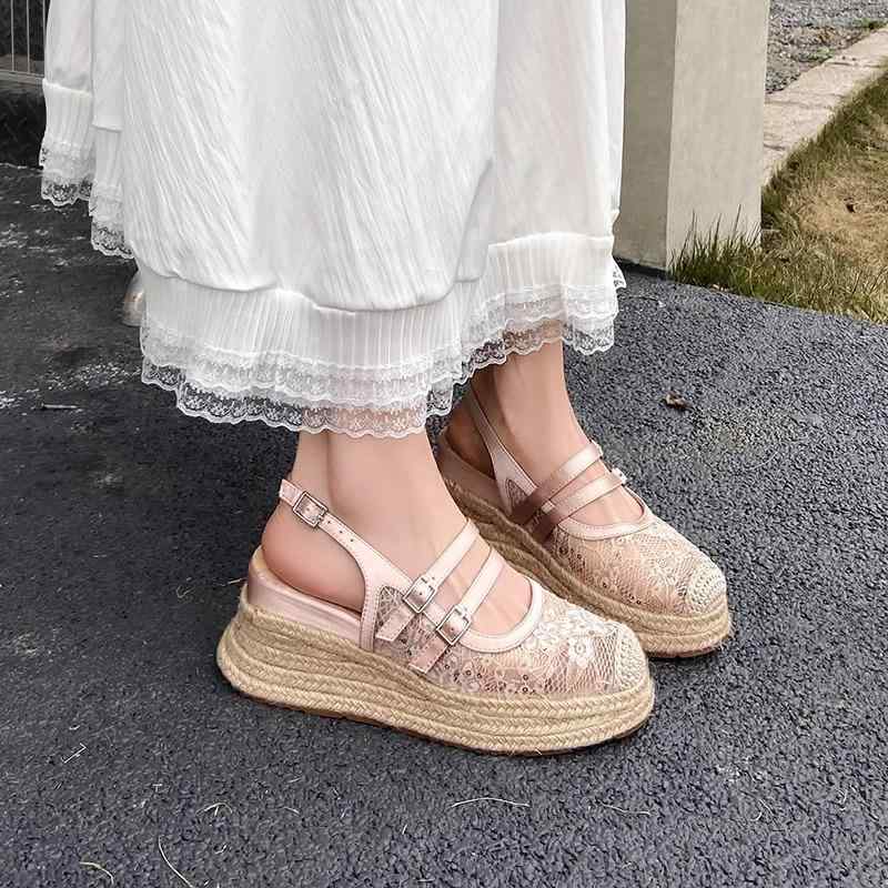 ミュールサンダル レディース 春夏 つま先カバー レース メッシュ 透かし編み 通気性 厚底 エスパ・・・