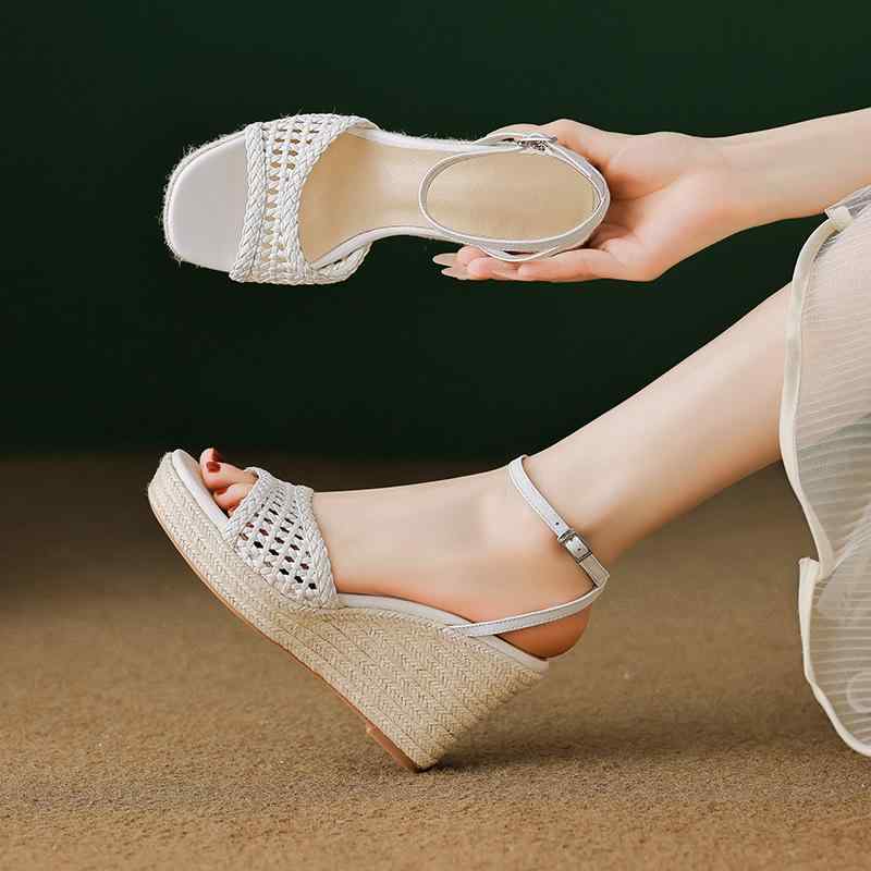 サンダル レディース 女性用 オープントゥ 厚底 プラットフォーム 本革 牛革 エスパドリーユ ジュ・・・