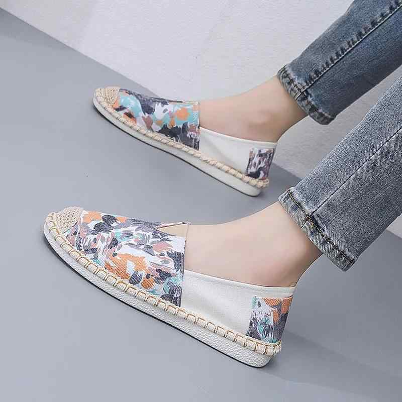 レディース スリッポン 春夏 小花柄 エスパドリーユ ぺたんこ靴 メッシュ キャンバス フラット 婦・・・
