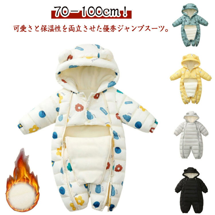 ベビー服 ジャンプスーツ ダウンロンパース ベビー キッズ 防寒着 つなぎ 秋冬 お出かけ 女の子 ・・・