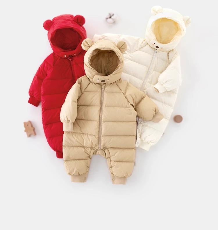 秋冬 ベビー ロンパース ダウンコート カバーオール ジャンプスーツ 保温 帽子付き 防寒ダウンジャ・・・