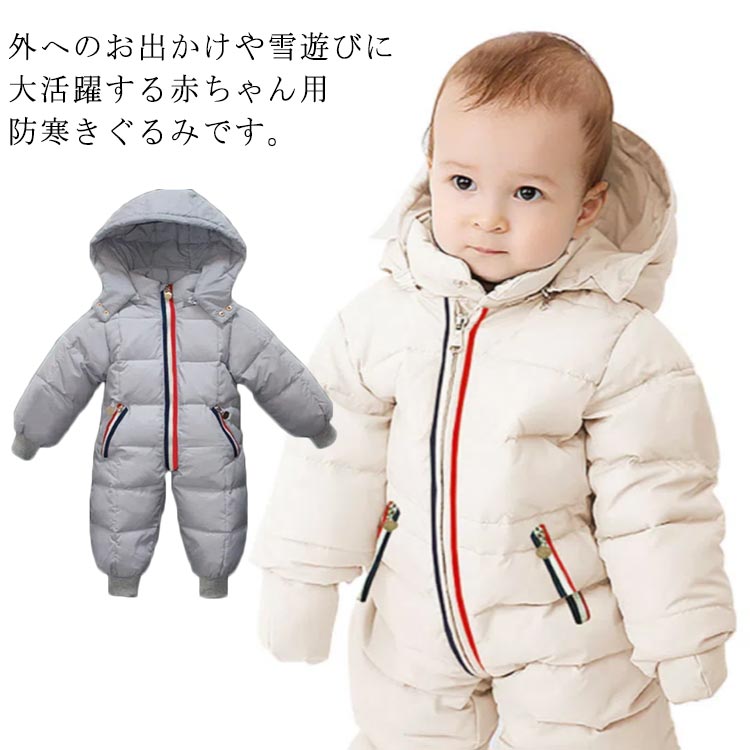 おくるみ スノーウェア ファスナー ダウン90% ベビー服 厚手 ロンパース カバーオール 防寒着 ・・・