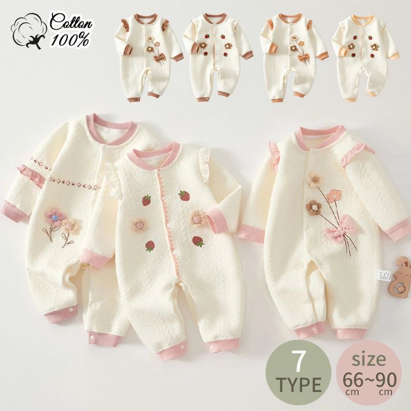 ロンパース 長袖 ベビー服 女の子 カバーオール キッズ 100%綿 コットン 子供服 新生児 赤ち・・・