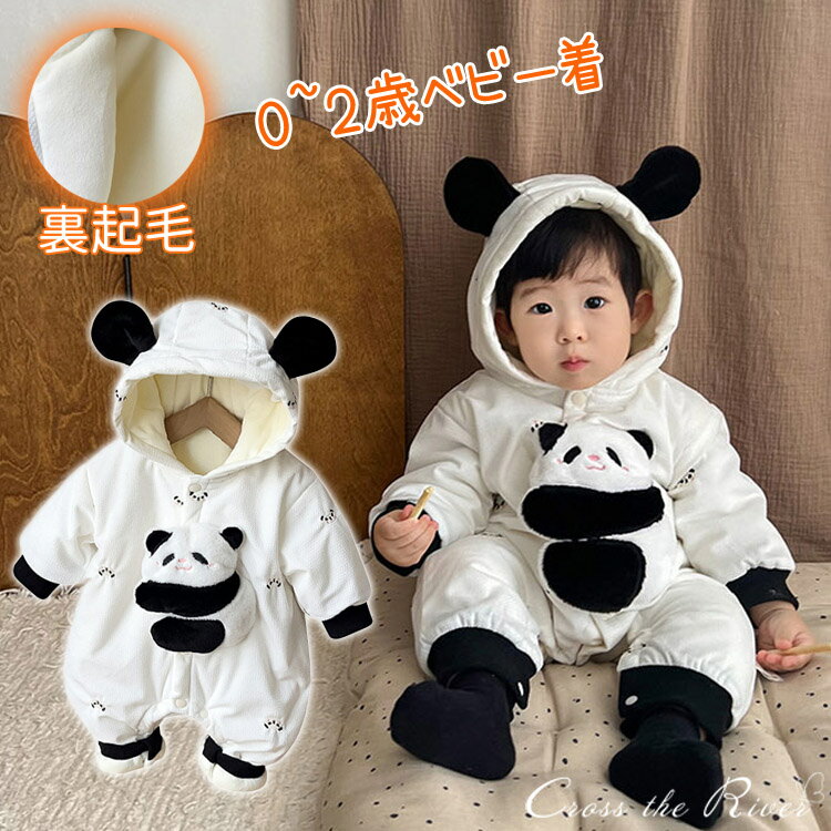 着ぐるみ ベビー ロンパース パンダ 服 裏起毛 クリスマス プレゼント ロンパース 新生児 厚手 ・・・
