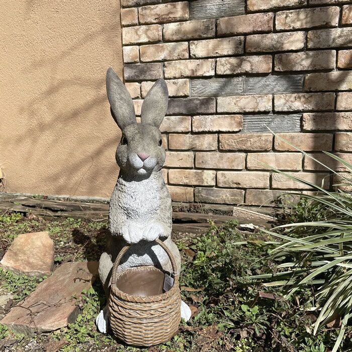 【野川農園】リアルウサギポット(グレー)(15209)H=50.5cm うさぎ うさぎ置物 ウサギ置・・・