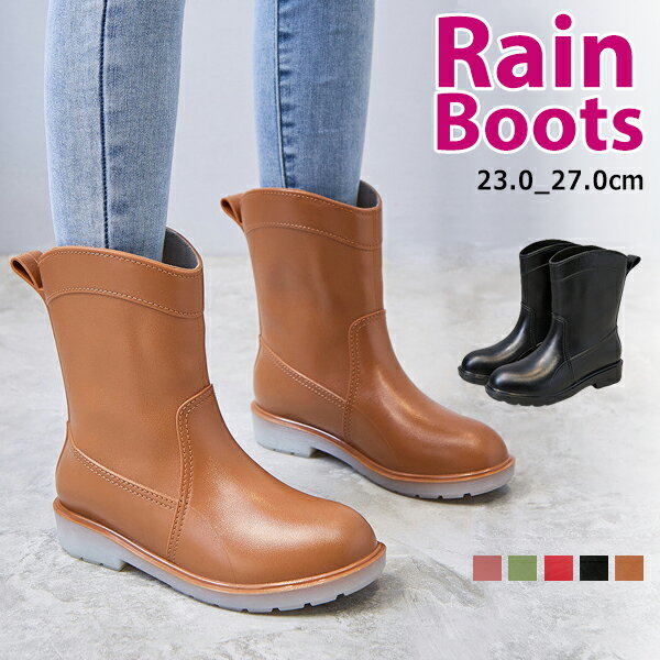レインブーツ レディース レインシューズ おしゃれ ブーツ ミドル 丈 防水 長靴 雨 雨靴 農作業・・・