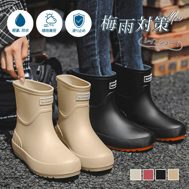 レインブーツ レディース レインシューズ 長靴 防水シューズ 雨靴 ショート ブーツ 軽量 滑り止め・・・