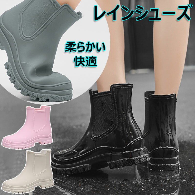 レインブーツ レディース ショート 超軽量 雨靴 ブーツ 防水 柔らかい レインシューズ 雨 滑り止・・・
