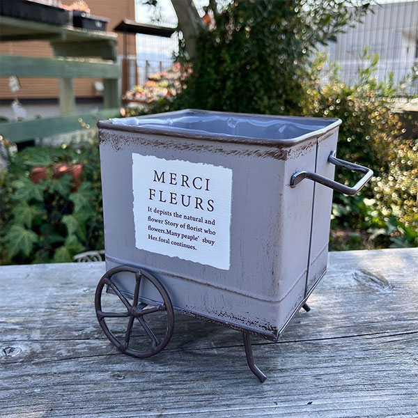 カート型 ブリキプランター (内径W10×L9cm) メルシーカートGY (MH1575)/おしゃれ・・・