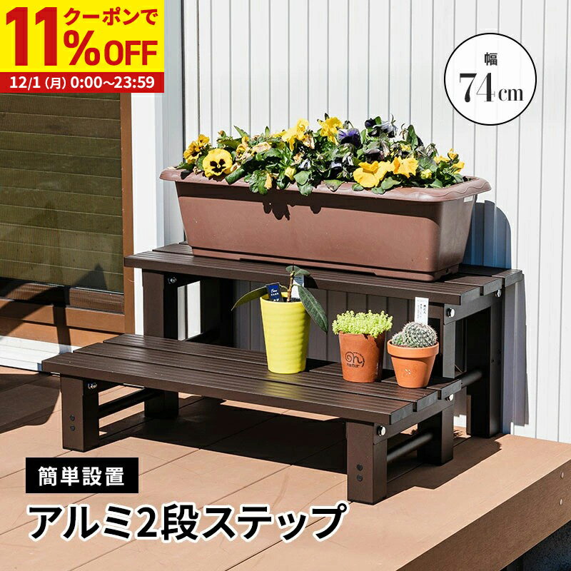 【11%OFFクーポン配布中★12/1に使える】 アルミ2段ステップ 幅74 縁台 ベンチ アルミベ・・・