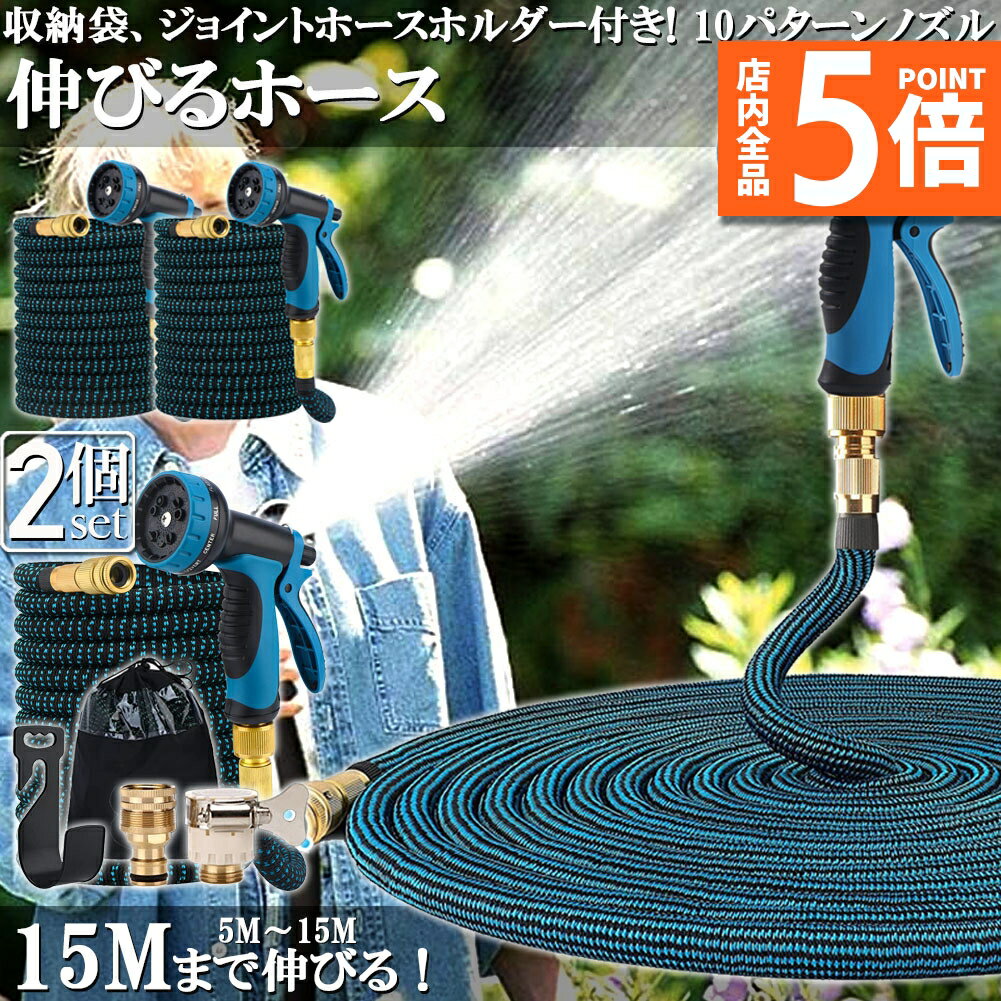 ★期間限定ポイント5倍★ホース 散水ホース 2個セット ホースリール 伸縮ホース 伸びるホース 洗車・・・