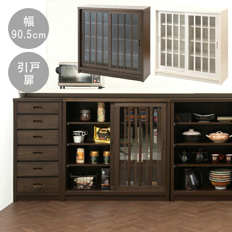 クーポン配布中/完成品 日本製【tatis】和モダン キッチンカウンター下収納 格子 引き戸ガラス扉・・・