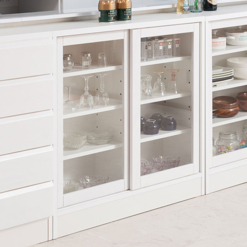 【クーポン配布中】【DELUX】シリーズ カウンター下収納90引戸 ガラスキャビネット ホワイト す・・・