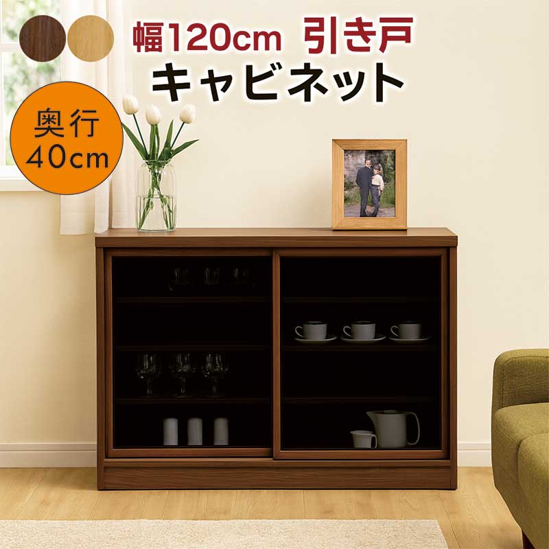 引き戸 キャビネット 奥行40cm 幅120cm 薄型 サイドボード キャビネット ラック 棚 リビ・・・