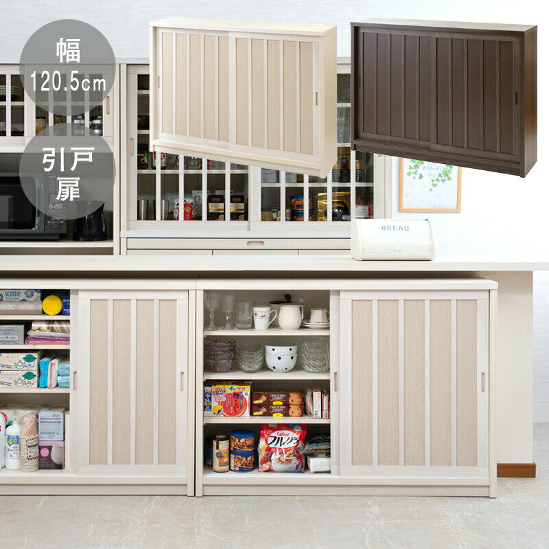 カウンター 下収納 幅120 薄型 食器棚 キャビネット 引き戸 木製 スリム スライド扉 収納棚 ・・・