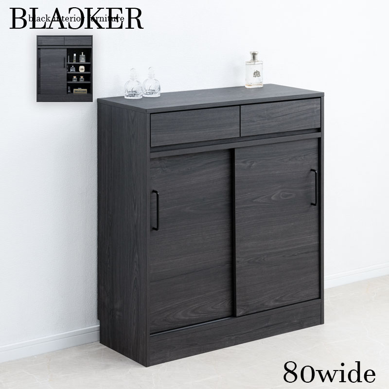 【Blacker LV】引戸キャビネット 幅80 奥行32.5 高さ87.5cm ブラック 背面化粧・・・