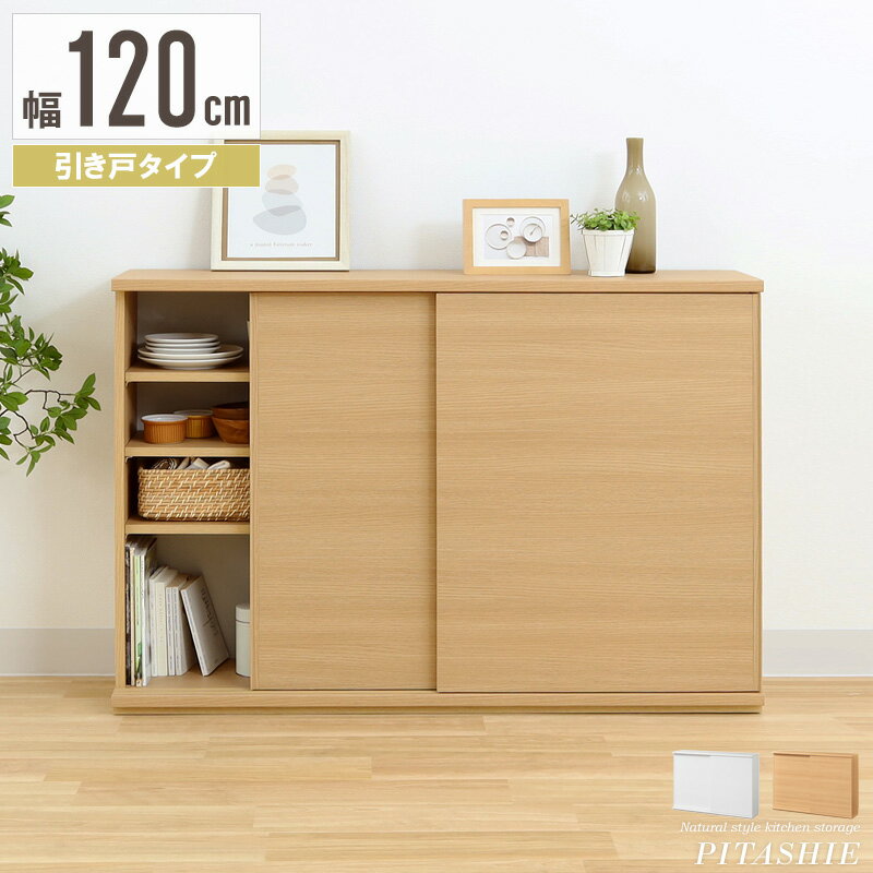 【12/1はポイント10倍★】 収納棚 キャビネット 引き戸 木製 ナチュラル 幅120cm 奥行3・・・