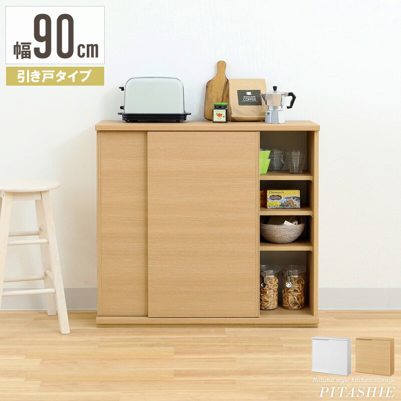 【12/1はポイント10倍★】 収納棚 キャビネット 引き戸 木製 ナチュラル 幅90cm 奥行30・・・