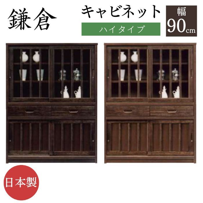 日本製 大川家具 鎌倉 キャビネット ハイタイプ H 幅90 サイドボード 食器棚 ロー 収納 水屋・・・