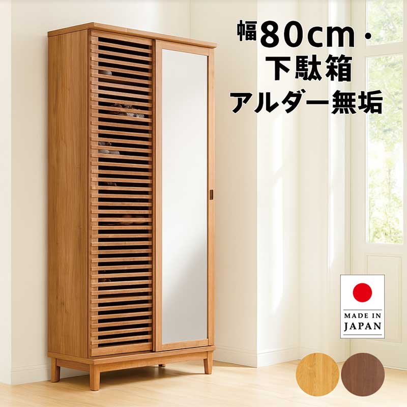 下駄箱 引き戸 ミラー 全身鏡 姿見 幅80cm シューズボックス 靴箱 ハイタイプ 大容量 大川家・・・
