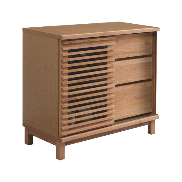 【自然塗装オイル仕上げの】 サイドボード おしゃれ 家具 引き戸 幅80 可動棚 引き出し 脚付きア・・・