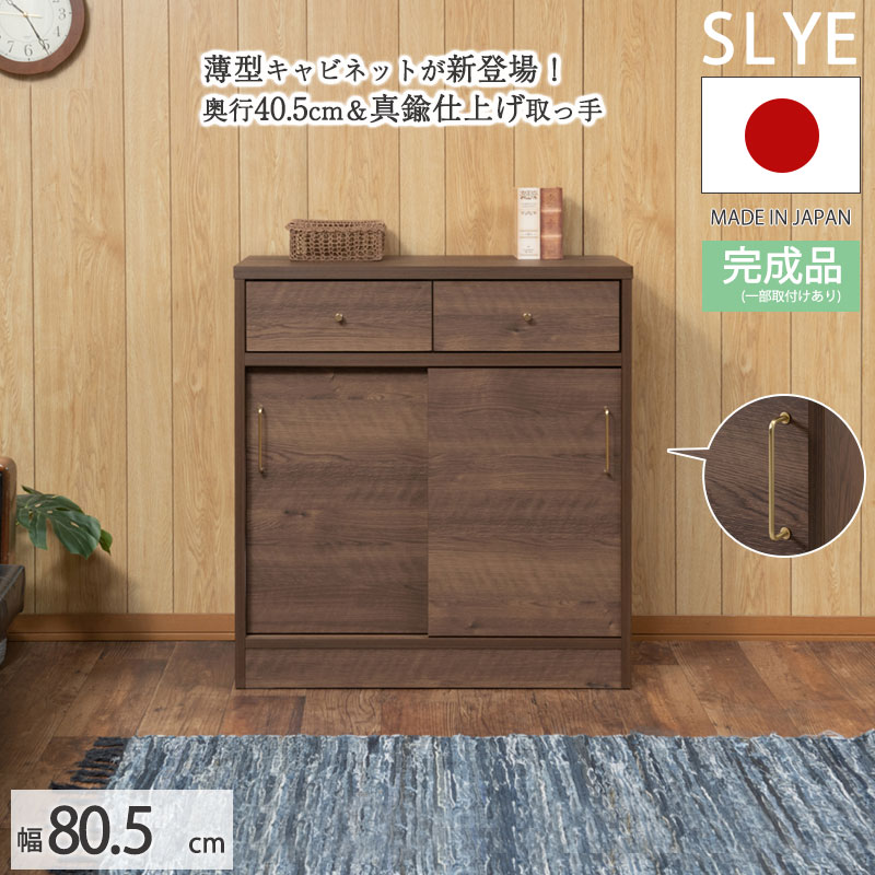 A4収納ができる。薄型キッチンカウンター下収納&リビングボードにもなる 【SLYE】 幅80.5 完・・・