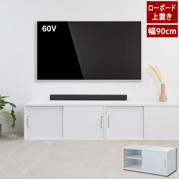 ローボード 引戸キャビネット 幅90cm 上置き利用可 テレビ台 テレビボード WHITELIV F・・・