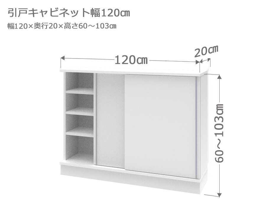 セミオーダー カウンター下収納 ラスコ 引戸キャビネット 幅120cm 奥行20cm 高さ60〜10・・・