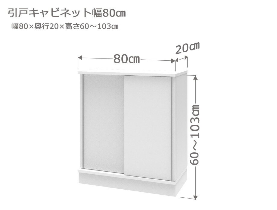 セミオーダー カウンター下収納 ラスコ 引戸キャビネット 幅80cm 奥行20cm 高さ60〜103・・・