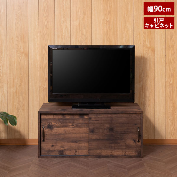 ARIZONA 引戸キャビネット 幅90cm ヴィンテージ家具調 ローボード 上置き利用可 扉収納 ・・・