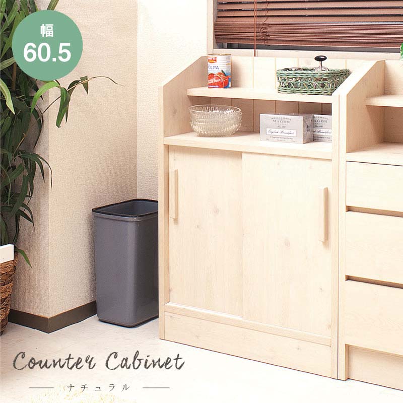 可愛さアップ カウンター下収納 引き戸 完成品 幅60.5 奥行30 薄型 キッチンカウンター下 収・・・