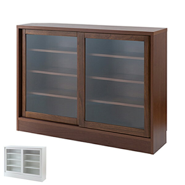 カウンター下収納 ガラス引き戸 シンプルデザイン 約幅121cm ( カウンター 食器棚 カップボー・・・