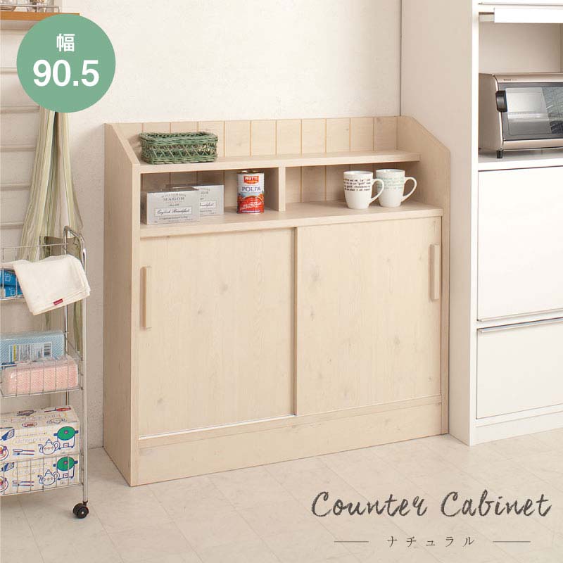 【30日★5%OFFクーポン】 可愛さアップ カウンター下収納 引き戸 完成品 幅90.5 奥行30・・・