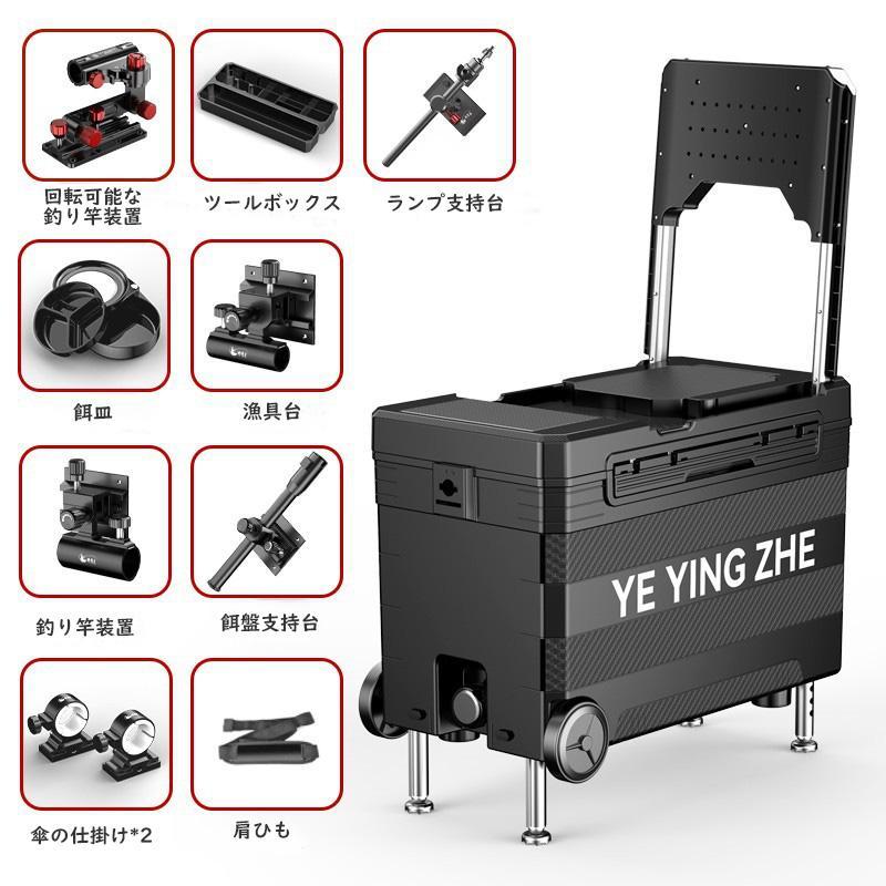 釣り用クーラーボックス 多機能32L 座れる頑丈マッスルボディ 防水 ハンドル キャスター付 漁具装・・・