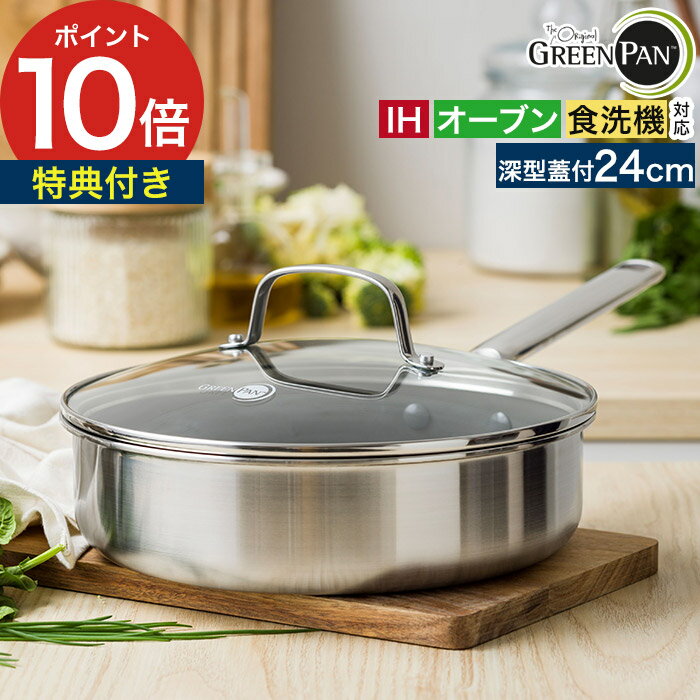 GREEN PAN グリーンパン エーペックス 深型フライパン 24cm ガラス蓋付き CC0106・・・