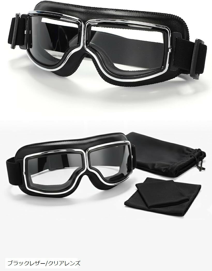 バイク用ゴーグル 収納袋&曇り止めクロス付 ビンテージデザイン ヘルメット対応 UVカット 防風 防・・・