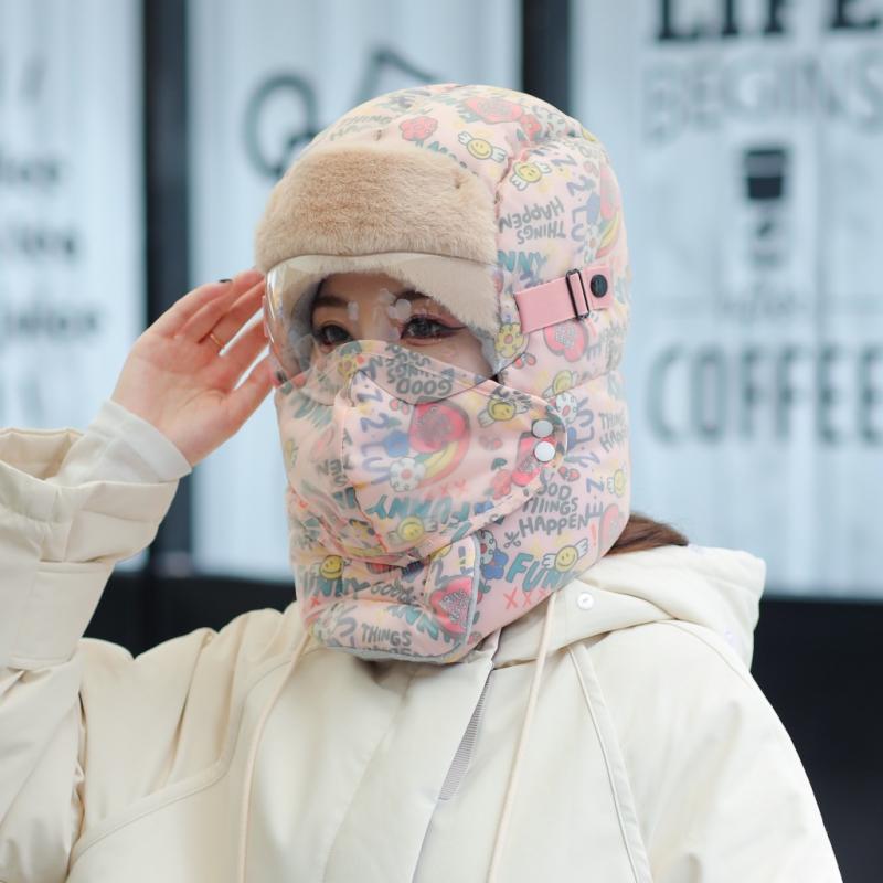 帽子 レディース 秋冬 雷鋒帽 防寒 マスク付き スキー 自転車 バイク 裏起毛 あったか ミトン ・・・