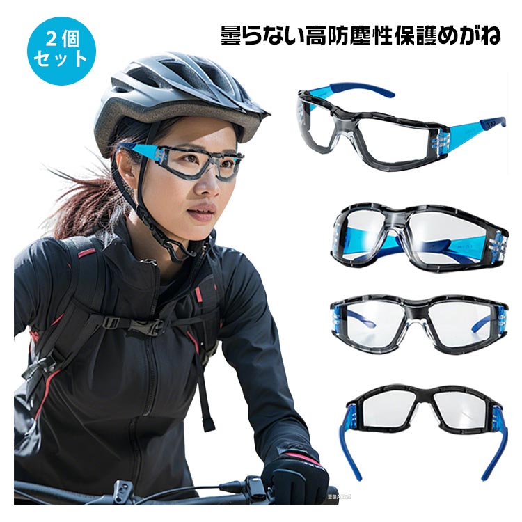 曇らない 防護ゴーグル 2点セット メガネ オシャレ 男女兼用 作業用ゴーグル 保護メガネ 防風 防・・・