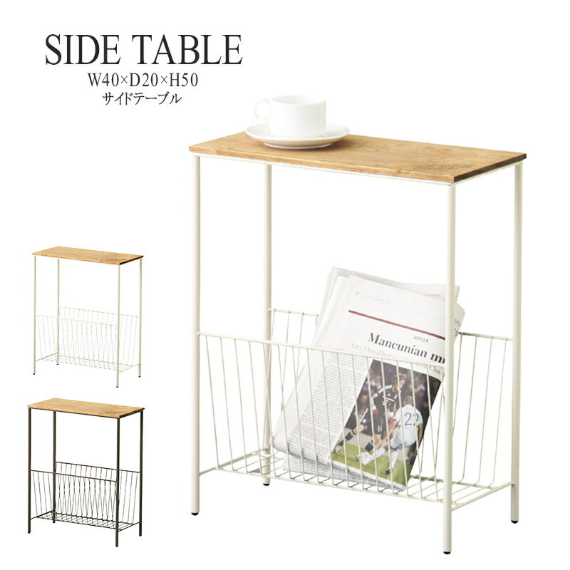 完成品 サイドテーブル 幅40cm 木製 アイアン 収納 マガジンラック スリム コンパクト ナイト・・・