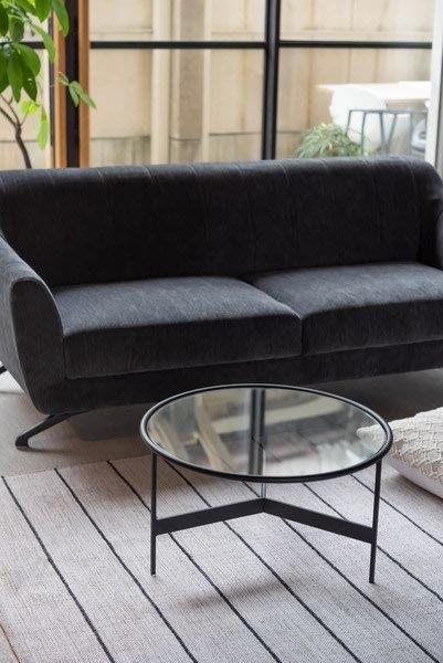ラウンドガラステーブル L 直径60 高さ33 低め ガラス製 アイアン ブラック 黒 円形 丸形 ・・・