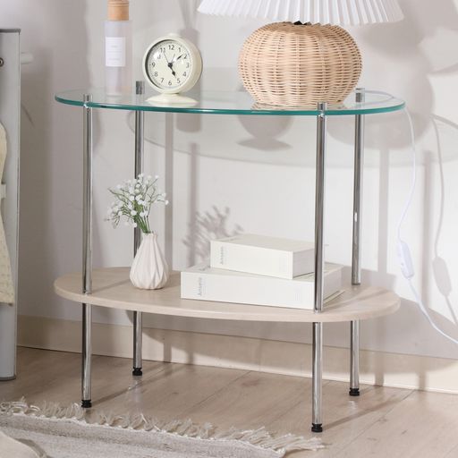 不二貿易サイドテーブル幅60x奥行32x高さ53cmクリアx木目強化ガラス韓国インテリア2段仕様Ch・・・