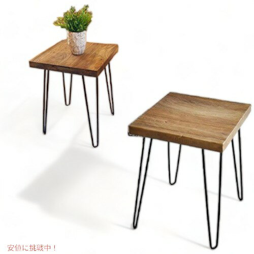 エンドテーブル モダンサイドテーブル 寝室・リビング用 強化ガラス天板×ウッド調MDF インダストリ・・・