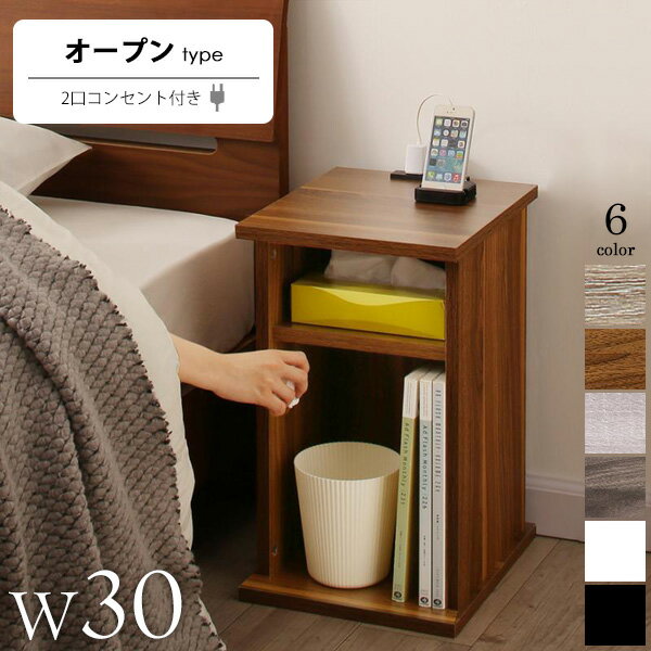 [最大10%OFFクーポン] ナイトテーブル サイドテーブル コンセント付き オープンタイプ 幅30・・・