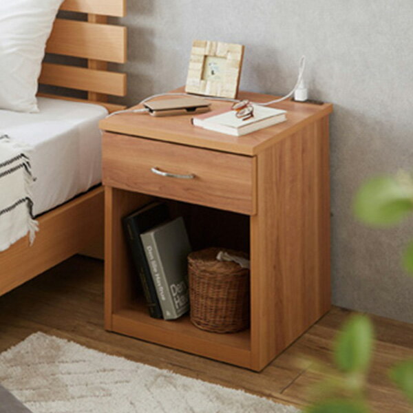 大商産業 ナイトテーブル コンセント付 引き出し付き 木製 ナイトチェストシリーズ 収納 ベッドサイ・・・