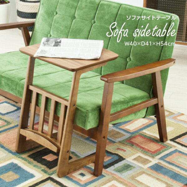 サイドテーブル ミニテーブル 幅45cm 木製 マガジンラック 収納ラック付き トムテ リビング ダ・・・