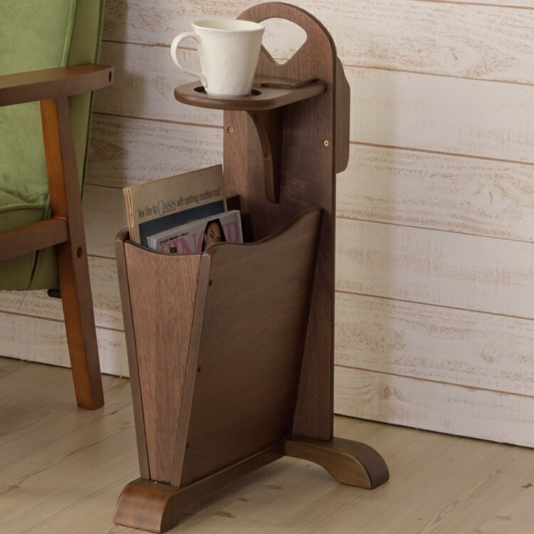【北海道・沖縄・離島配送不可】【代引不可】サイドテーブル 木製 マガジンラック付き カップ置き 携帯・・・