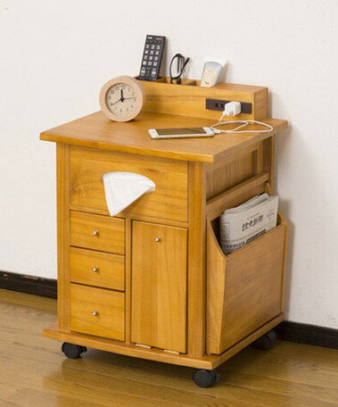 [最大10%OFFクーポン] サイドテーブル ワゴン ナイトテーブル サイドワゴン 収納付き 木製 ・・・