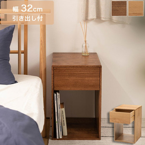 【送料無料】 ナイトテーブル サイドテーブル 高級感 ウォールナット オーク 引き出し 2段 モダン・・・