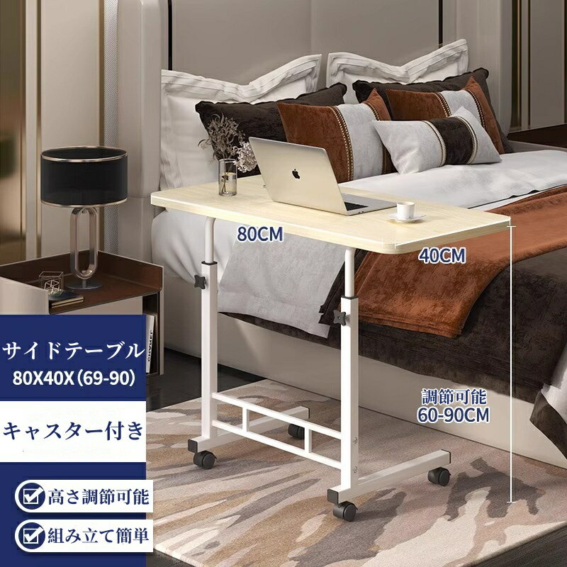 昇降式テーブル サイドテーブル 高さ調節 キャスター付き テーブル 可動式 机 ベッド用テーブル ベ・・・